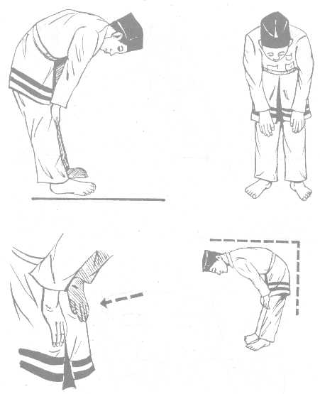 A bowing position, with the hands resting on the knees.